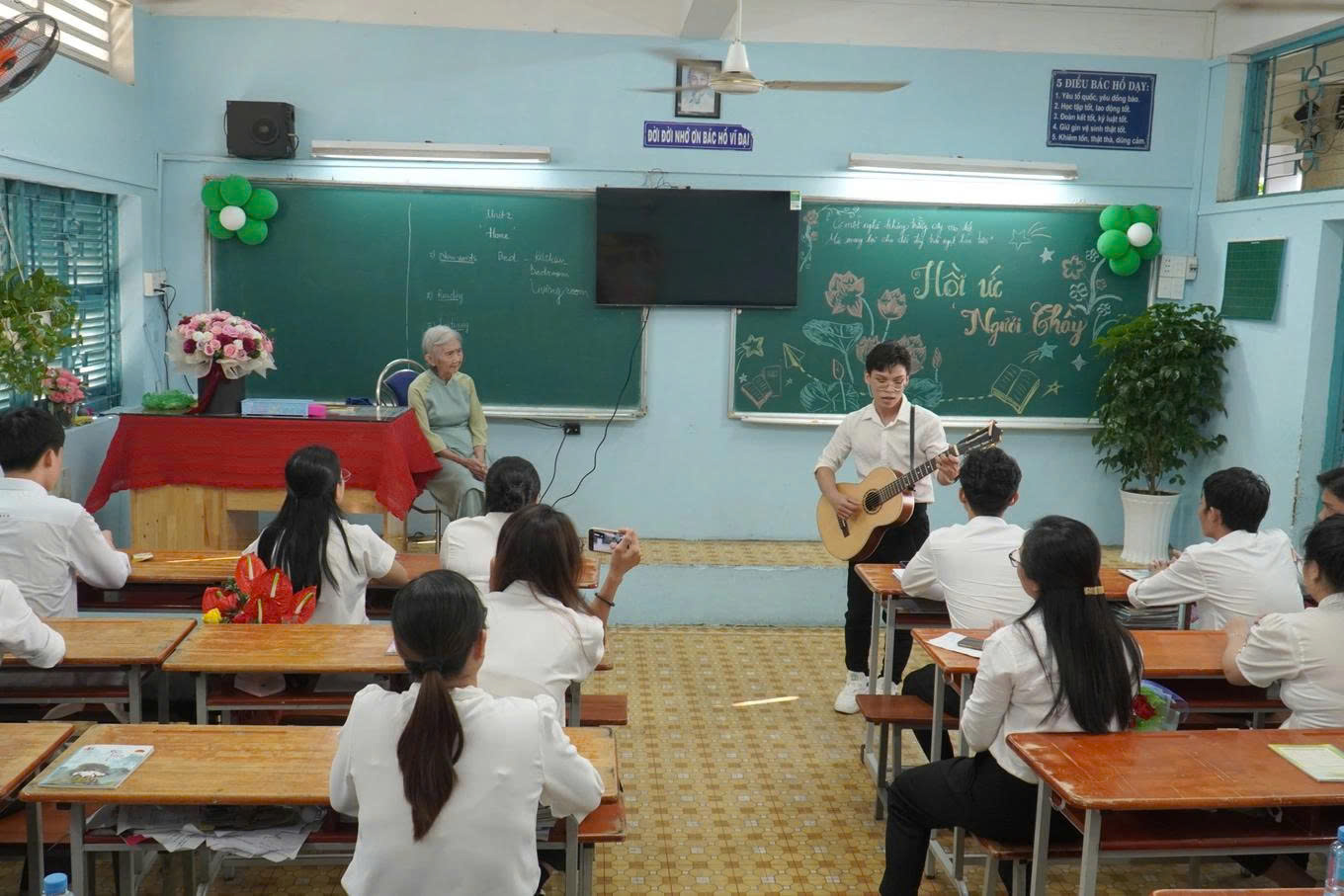 Nhìn tóc thầy ngỡ bụi phấn bay,