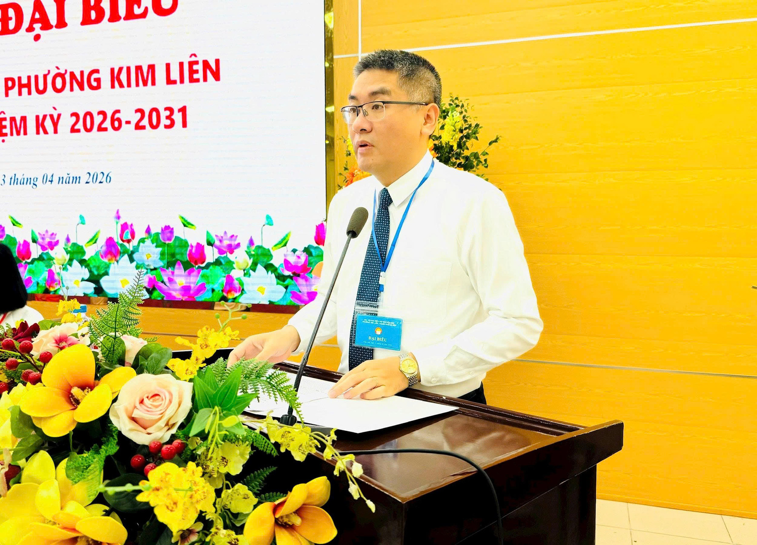 Phó Chủ tịch UBND phường Kim Liên Trần Hoàng phát biểu chỉ đạo tại Đại hội