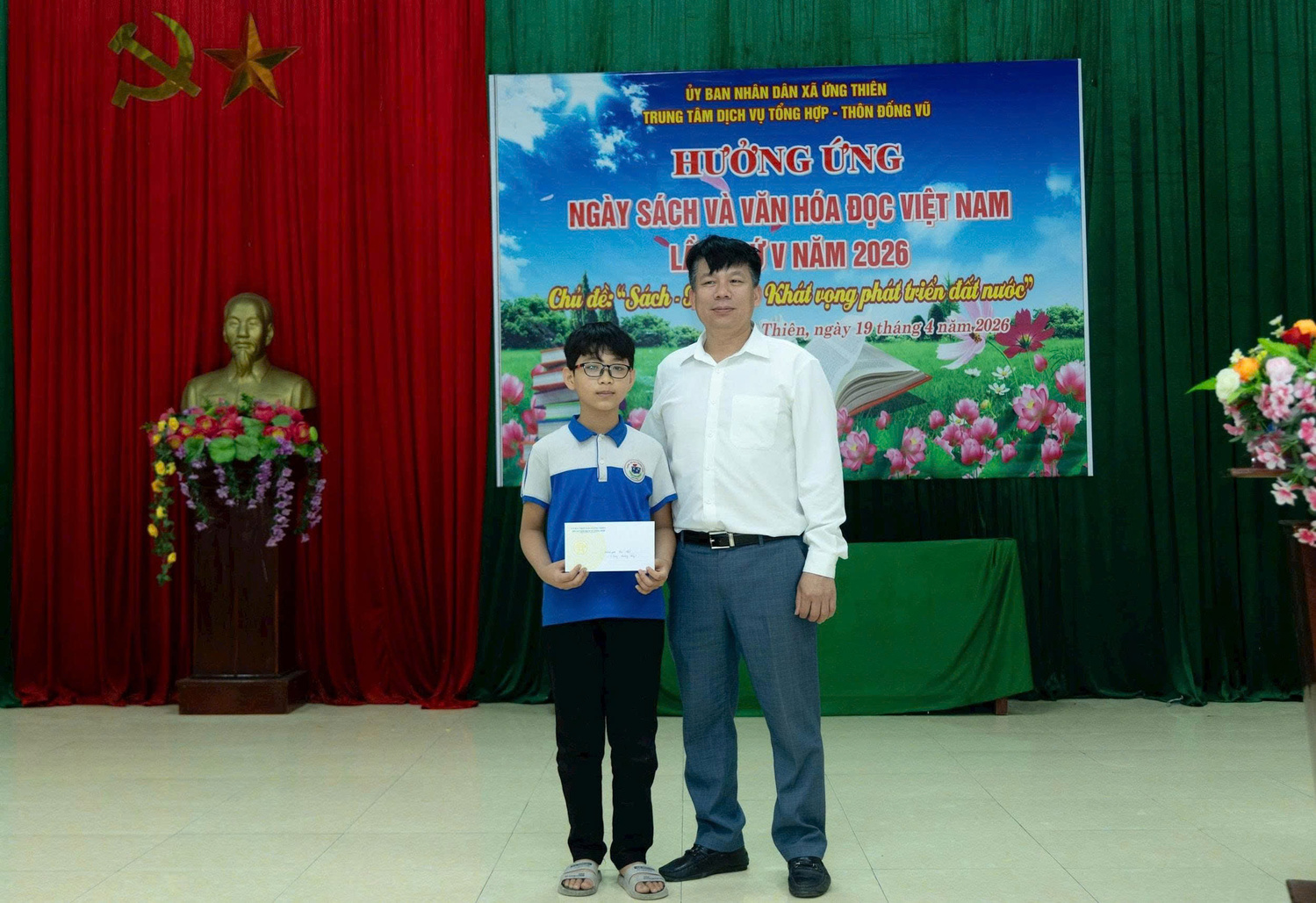 Hưởng ứng Ngày Sách và Văn hóa đọc Việt Nam năm 2026 (21-4) với chủ đề “Sách, tri thức, khát vọng phát triển đất nước”, ngày 19-4 xã Ứng Thiên tổ chức nhiều hoạt động ý nghĩa, thu hút hàng trăm học sinh cùng đông đảo cán bộ, nhân dân tham gia.