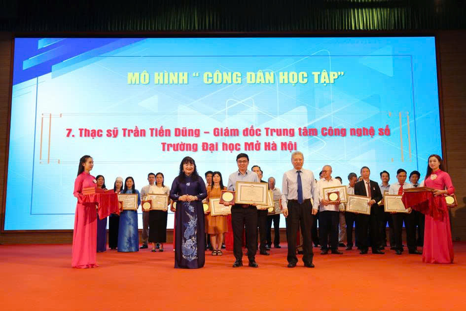 Đặc biệt, tại hội nghị lần này, ThS.Trần Tiến Dũng - Giám đốc Trung tâm Công nghệ Kỹ thuật Số của Trường Đại học Mở Hà Nội đã được vinh danh là cá nhân “Công dân học tập tiêu biểu” trong phong trào khuyến học, khuyến tài. Với nhiều sáng kiến trong việc ứng dụng công nghệ vào giáo dục, ThS.Trần Tiến Dũng đã góp phần quan trọng trong việc nâng cao chất lượng đào tạo trực tuyến, mở rộng cơ hội học tập cho hàng nghìn người học trên cả nước. Sự ghi nhận này là minh chứng rõ nét cho vai trò của đội ngũ cán bộ, giảng viên trong việc đổi mới sáng tạo, thích ứng với xu thế chuyển đổi số trong giáo dục.