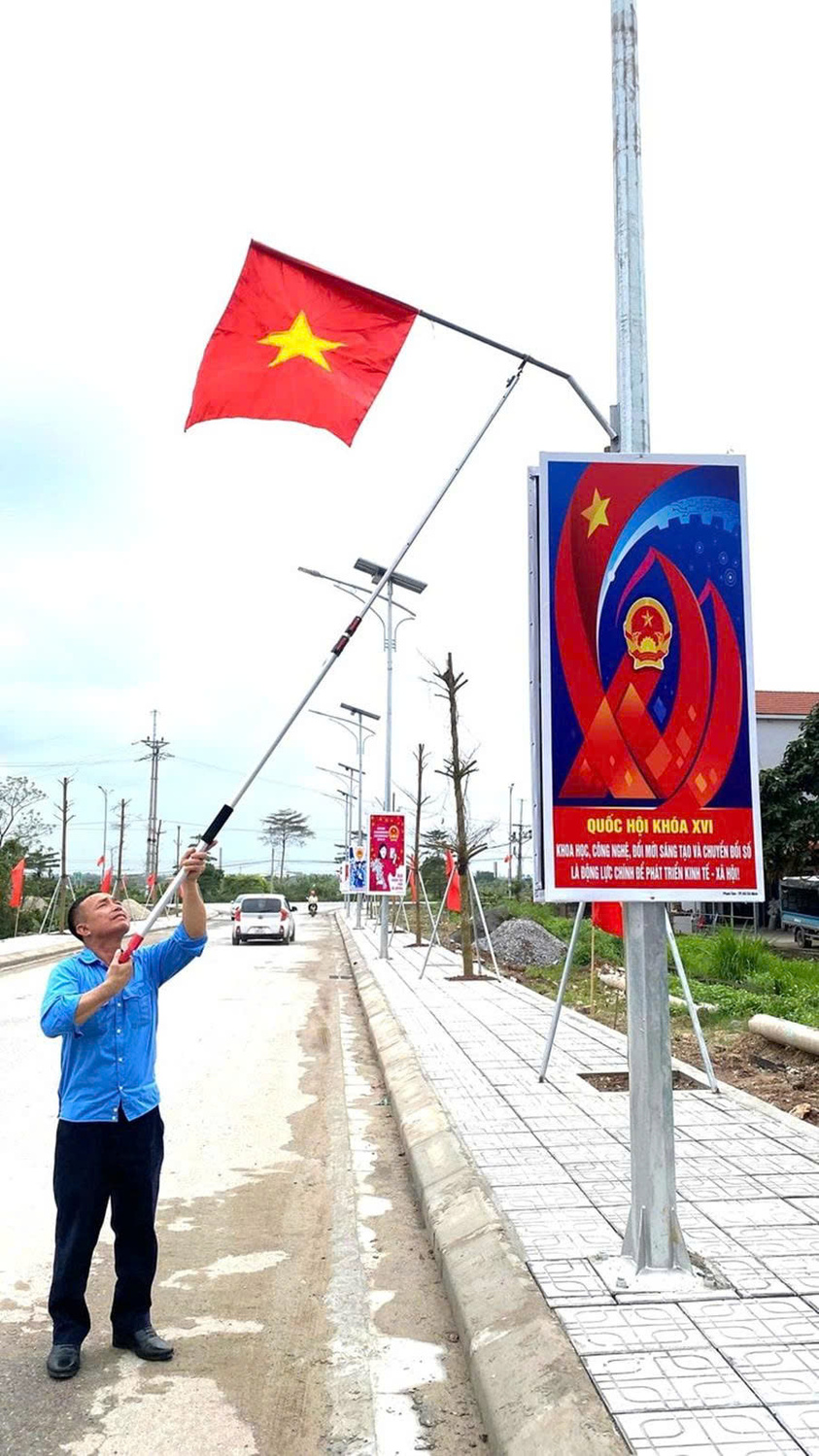 khóa XVI và đại biểu HĐND các cấp nhiệm kỳ 2026-2031 được tổ chức Bên cạnh tuyên truyền trên môi trường số, địa phương còn đẩy mạnh tuyên truyền trực quan thông qua hệ thống băng rôn, pano, áp phích, khẩu hiệu tại trụ sở cơ quan, nhà văn hóa các thôn và trên các tuyến đường chính. Trung tâm Dịch vụ Tổng hợp xã đã chủ trì thực hiện trang trí, tuyên truyền trên nhiều tuyến đường trọng điểm như trục đường chính của xã, tuyến đường trục phát triển phía Đông, khu vực Quốc lộ 1A và khu vực trụ sở Đảng ủy, UBND xã. Tại các thôn trên địa bàn xã, công tác trang trí, tuyên truyền cũng được triển khai tích cực với hàng nghìn lá cờ và băng rôn được treo dọc các tuyến đường, khu dân cư.