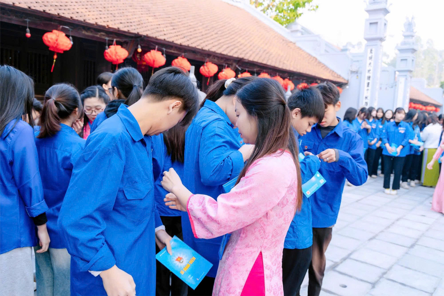 Lễ kết nạp đoàn viên tại Đền Văn Hiến, xã Ô Diên, thành phố Hà Nội