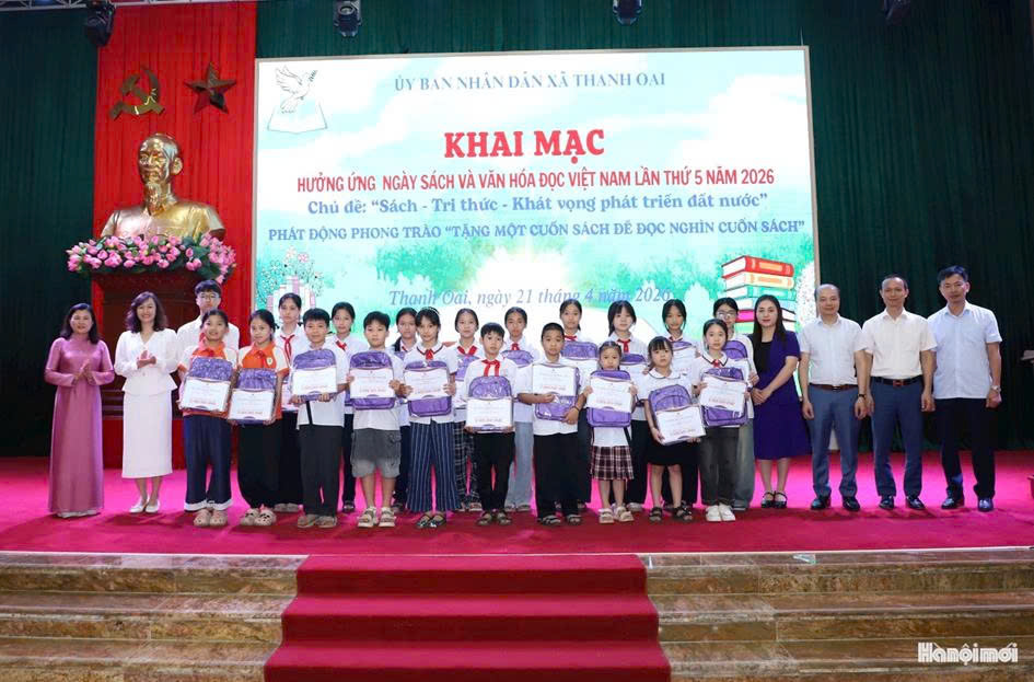 Ngày 21/4, xã Thanh Oai tổ chức khai mạc hưởng ứng Ngày sách và Văn hóa đọc Việt Nam lần thứ 5 năm 2026 với chủ đề: “Sách - Tri thức - Khát vọng phát triển đất nước” và phát động phong trào “Tặng một cuốn sách để đọc nghìn cuốn sách”.