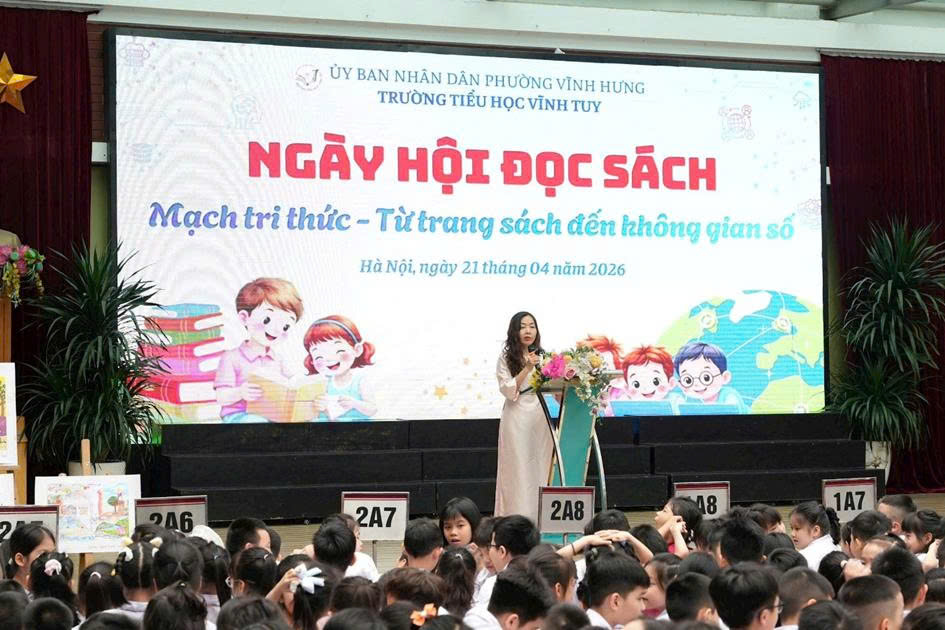 Ngày 21/4, Trường Tiểu học Vĩnh Tuy (phường Vĩnh Hưng) tổ chức Ngày hội đọc sách năm học 2025-2026 với nhiều hoạt động phong phú.