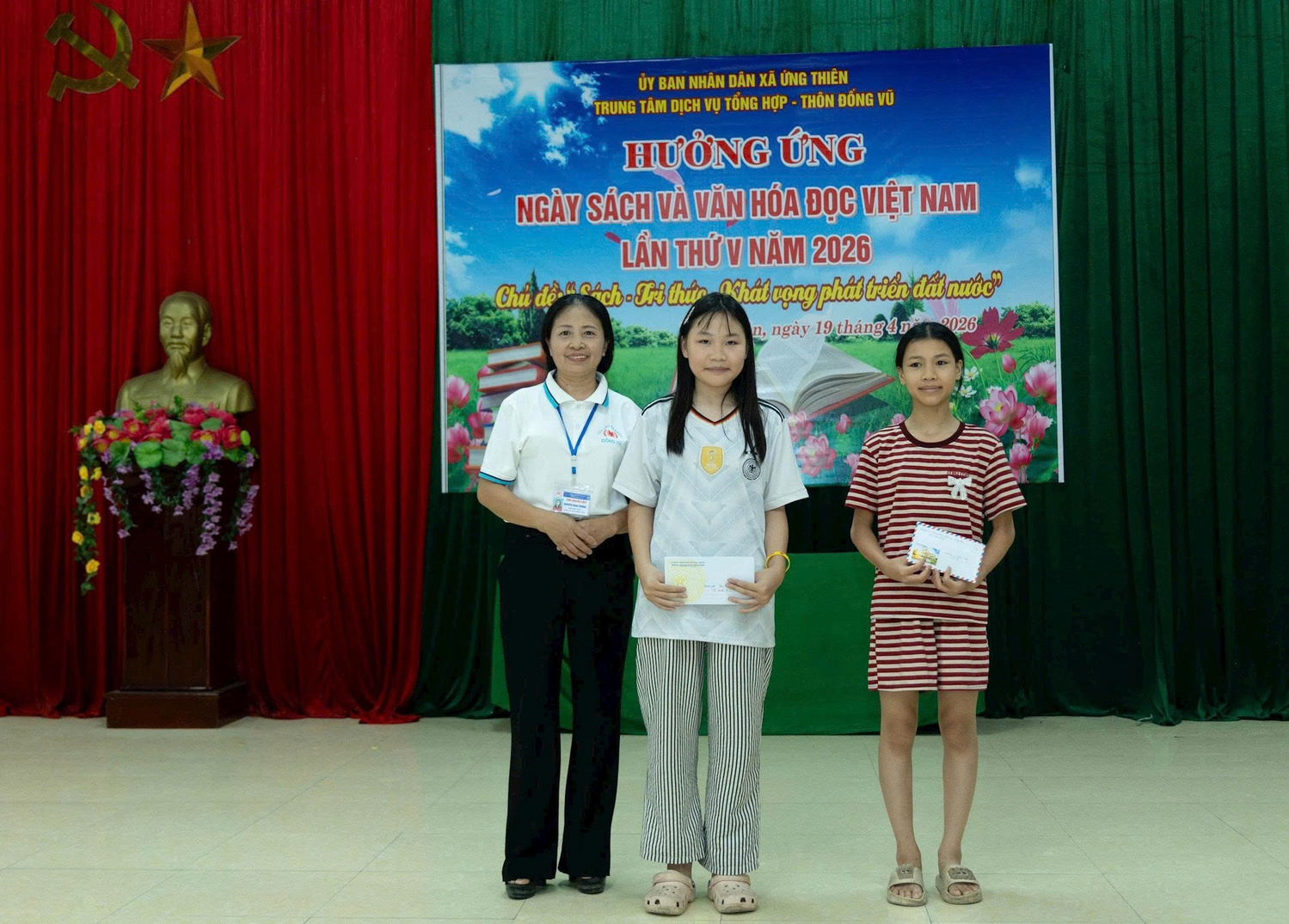 Hưởng ứng Ngày Sách và Văn hóa đọc Việt Nam năm 2026 (21-4) với chủ đề “Sách, tri thức, khát vọng phát triển đất nước”, ngày 19-4 xã Ứng Thiên tổ chức nhiều hoạt động ý nghĩa, thu hút hàng trăm học sinh cùng đông đảo cán bộ, nhân dân tham gia.
