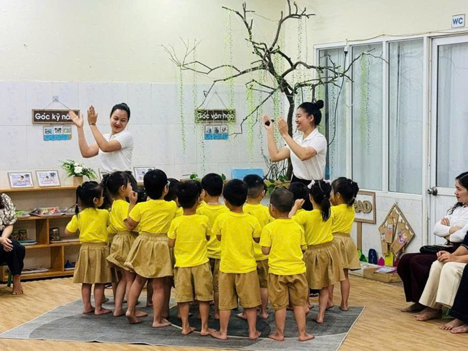 Không còn cách dạy truyền thụ một chiều, các cô giáo đã biến lớp học thành không gian trải nghiệm sinh động. Trẻ được tham gia tương tác, trao đổi và nhập vai vào các tình huống của câu chuyện. Thông qua đó, các em không chỉ phát triển ngôn ngữ mà còn được giáo dục kỹ năng sống, biết nhận diện và điều chỉnh cảm xúc, nuôi dưỡng lòng nhân ái.