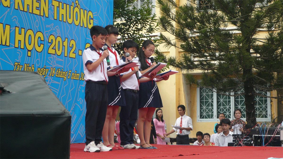 Khác biệt các nơi khác, ở đây không thấy bóng dáng trực tiếp của giáo viên hay cán bộ nào mà do các học sinh tự điều khiển chương trình từ đầu đến cuối. Tôi thấy có tới 4 em học sinh làm người dẫn chương trình: Từ việc giới thiệu chương trình văn nghệ, giới thiệu đại biểu tới dự đến tổ chức trao thưởng cho các giải các em đều rất rõ ràng mạch lạc, tự tin và hấp dẫn đến lạ thường.