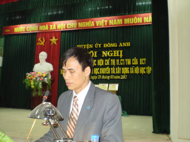 Đ/c Lê Trung Kiên – Phó Bí thư Thường trực Huyện uỷ tổng kết hội nghịĐánh giá chung ưu điểm:Thực hiện chỉ thị 11 của Bộ Chính trị, trong 5 năm qua cấp ủy Đảng, chính quyền từ Huyện đến cơ sở đã tổ chức quán triệt, tuyên truyền và lãnh đạo, chỉ đạo thực hiện nghiêm túc chỉ thị. Trong tổ chức thực hiện đã xác định rõ mục tiêu, nhiệm vụ và các nhóm giải pháp phù hợp với thực tiễn của huyện, vì vậy đạt được nhiều kết quả công tác khuyến học, khuyến tài, xây dựng xã hội học tập góp phần nâng cao dân trí, bồi dưỡng nhân tài phục vụ nhiệm vụ công nghiệp hoá, hiện đại hoá Huyện.
