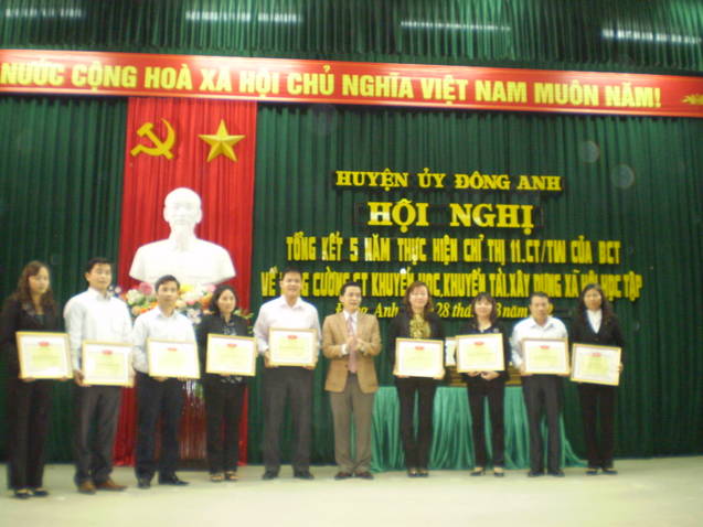 Sau khi chỉ thị 11- CT/TW, ngày 13/4/2007 của Bộ Chính trị “Về tăng cường công tác khuyến học, khuyến tài, xây dựng xã hội học tập” được ban hành, Huyện uỷ Đông Anh đã khẩn trương, nghiêm túc tổ chức quán triệt nội dung chỉ thị; Ch¬ng tr×nh hµnh ®éng sè 26/CTr-TU ngµy 20/12/2007 vµ KÕ ho¹ch sè 06/KH-UBND ngµy 15/1/2008 cña UBND Thµnh phè vÒ viÖc t¨ng cêng sù l·nh ®¹o cña §¶ng vµ chÝnh quyÒn c¸c cÊp ®èi víi c«ng t¸c khuyÕn häc, khuyÕn tµi; x©y dùng x· héi häc tËp tới đội ngũ cán bộ chủ chốt, các ban ngành đoàn thể, cơ quan, đơn vị và đảng viên trong toàn Đảng bộ. Đồng thời cụ thể hoá chỉ thị bằng các văn bản chỉ đạo của cấp uỷ: Nghị quyết Đại hội Đảng bộ Huyện lần thứ XXVI, XXVII; ban hành ChØ thÞ sè 05/CT-HU ngµy 11/7/2006 vÒ