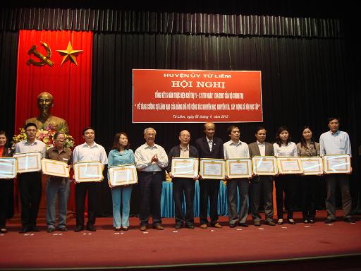 Chiều ngày 04/4/2012, Huyện ủy Từ Liêm tổ chức hội nghị tổng kết 5 năm thực hiện Chỉ thị số 11-CT/TW ngày 104/4/2007 về :" Tăng cường sự lãnh đạo của Đảng đối với công tác khuyến học, khuyến tài, xây dựng xã hội học tập". Dự hội nghị có: NGND Nguyễn Kim Hoãn, Chủ tịch Hội khuyến học Hà Nội, Đại diện Ban Tuyên giáo Thành uỷ, Ông Đỗ Mạnh Tuấn - Phó Bí thư thường trực- Chủ tịch HĐND; Ông Nguyễn Văn Tuân nguyên Phó Chủ tịch UBND huyện - Chủ tịch HKH và các đồng chĩ lãnh đạo UBND và HĐND quận; các đồng chí Trưởng, phó Ban Tuyên giáo quận; MTTQ; các đồng chí Đảng ủy cơ sở, lãnh đạo các ban, ngành và các đơn vị cá nhân được tặng giấy khen,...