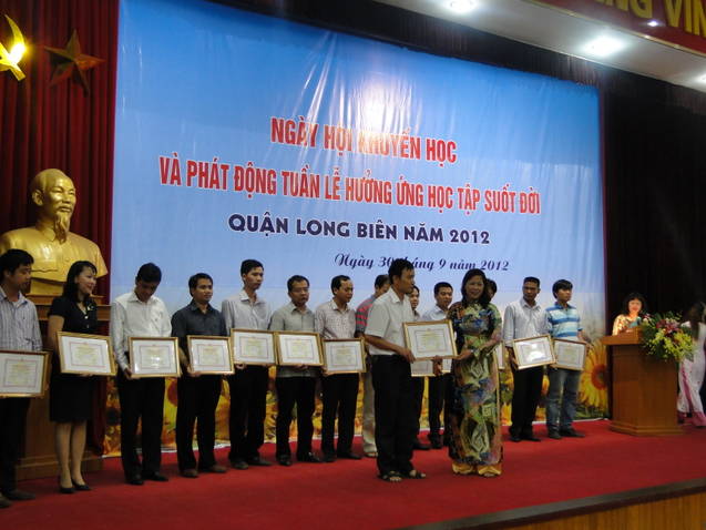 Ngày 30/10/2012, quận Long Biên đã tổ chức Ngày hội khuyến học 2012 và phát động tuần lễ hưởng ứng học tập suốt đời. Về dự ngày hội có NGND Nguyễn Kim Hoãn – Chủ tịch Hội Khuyến học Hà Nội, các đồng chí Đỗ Mạnh Hải – Phó Bí thư Quận uỷ, Chủ tịch UBND quận, Nguyễn Trọng Đông, Phó Bí thư Quận uỷ, Trần Thị Ngọc – Phó Chủ tịch UBND quận, Chủ tịch Hội Khuyến học quận, các đồng chí lãnh đạo các Ban của Hội Khuyến học Hà Nội, quận uỷ, UBND quận, các phường và đại diện các Hội Khuyến học, các dòng họ , gia đình hiếu học, các em học sinh, sinh viên tiêu biểu trong quận.