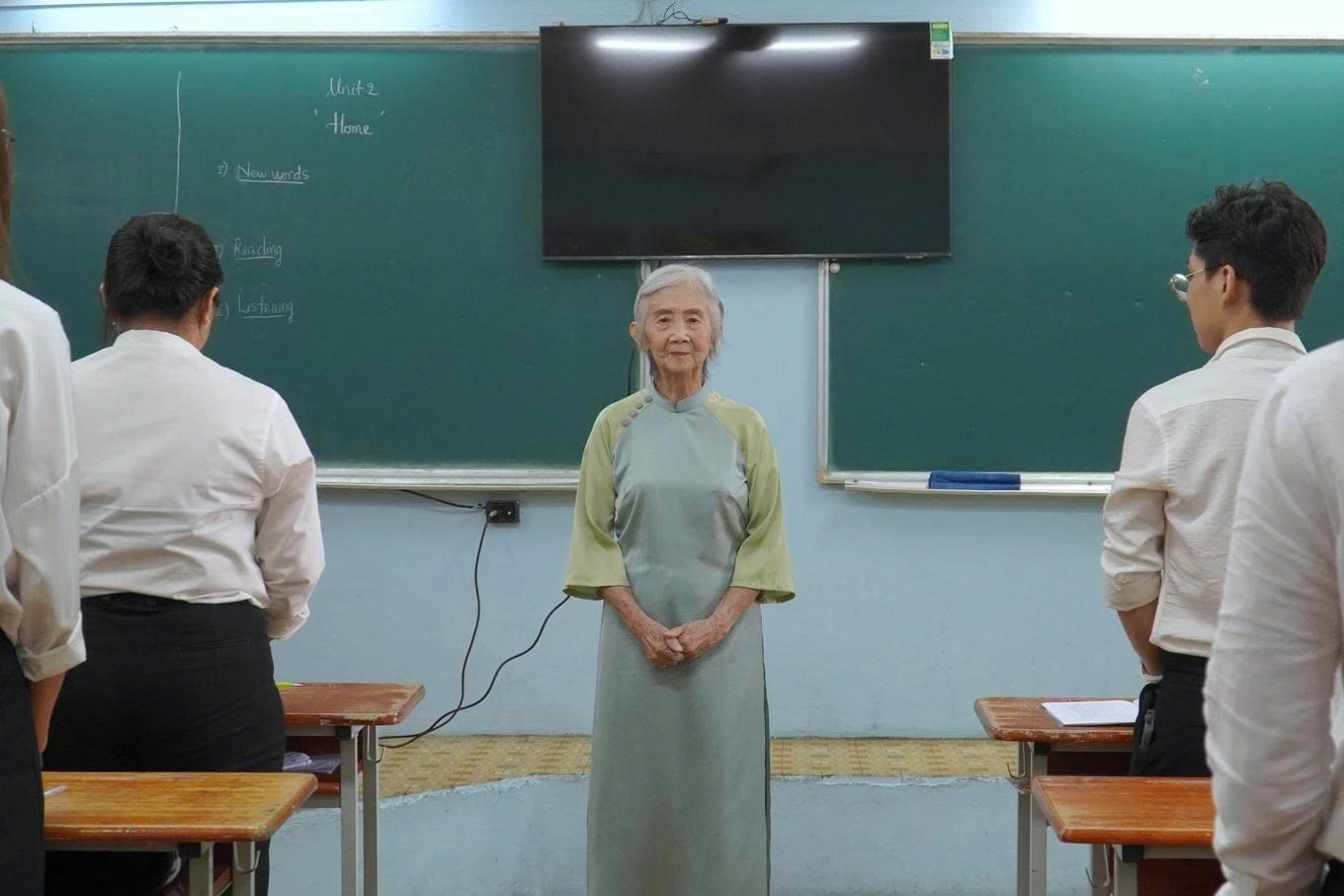 Nhìn tóc thầy ngỡ bụi phấn bay,