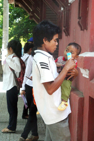 “Về nhà trọ lòng không yên tí mô nên bồng con đến chỗ vợ mình thi luôn”, anh Ủy giải thích.