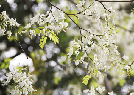 Hoa sưa đẹp nhưng nhanh tàn. Chỉ vài cơn gió nhẹ cũng khiến hoa rụng nhiều.