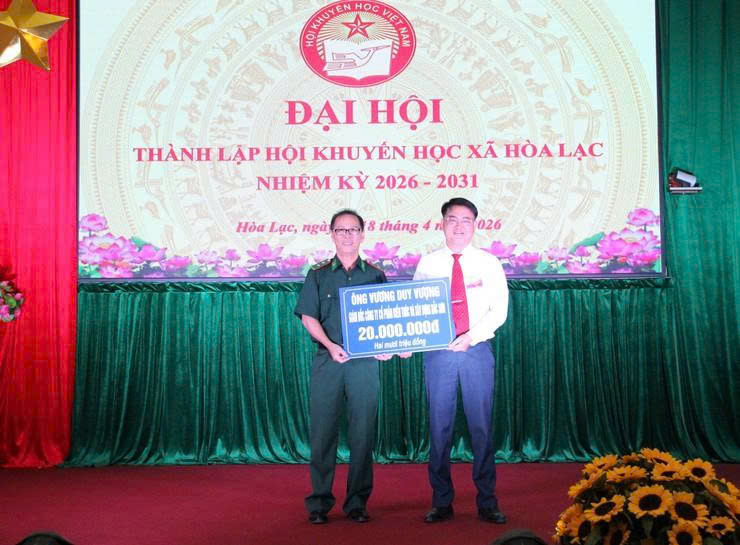 Trong hai ngày 17 và 18/4, xã Hòa Lạc tổ chức Đại hội thành lập Hội Khuyến học xã nhiệm kỳ 2026-2031 tại Hội trường Uỷ ban nhân dân xã, với sự tham dự của 60 đại biểu chính thức đại diện cho các ban, ngành, đoàn thể, thôn, cơ quan, đơn vị, doanh nghiệp trên địa bàn xã Hoà Lạc.