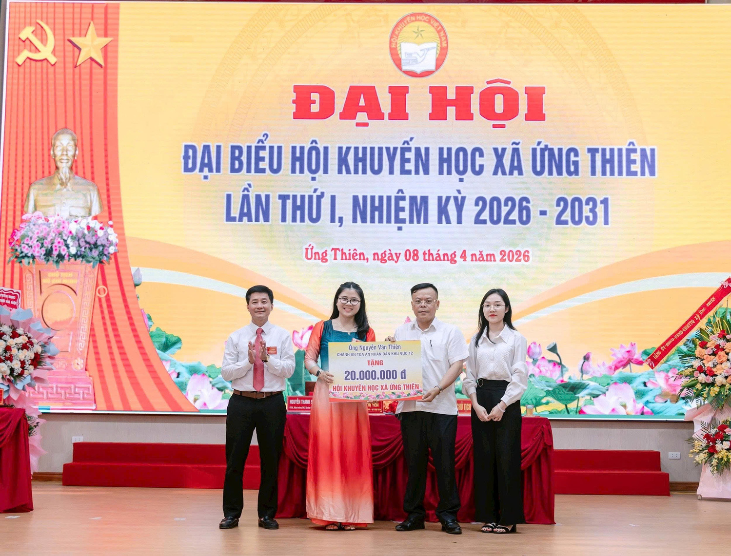 Hội Khuyến học thành phố Hà Nội tặng hoa chúc mừng Đại hội Chiều ngày 8-4, Hội Khuyến học xã Ứng Thiên tổ chức Đại hội lần thứ I, nhiệm kỳ 2026-2031, đề ra mục tiêu phát triển mạnh phong trào khuyến học, khuyến tài, góp phần xây dựng xã hội học tập bền vững.