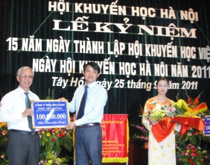 Được biết tính đến tháng 9/2011, Quỹ khuyến học Hà Nội đã nhận được tổng cộng 313 triệu đồng từ các nhà hảo tâm trên cả nước như Công ty Liên Doanh Phú Mỹ Hưng (TPHCM) nhiều năm liền đã tài trợ cho Hội khuyến học Hà Nội mỗi năm 100 triệu đồng. Bên cạnh đó tại buổi lễ, Trường Nhật ngữ Đông Du TPHCM tặng 49 suất học bổng trị giá 100 triệu đồng, Đại sứ quán Italia tặng 500 cuốn sách trị giá 28 triệu đồng và nhiều phần quà của các nhà tài trợ khác.