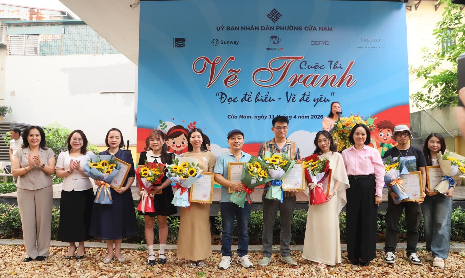 Nằm trong chuỗi hoạt động hưởng ứng, sáng 11-4, UBND phường Cửa Nam đã khai mạc Cuộc thi vẽ tranh với chủ đề “Đọc để hiểu - Vẽ để yêu”. Giám đốc Trung tâm Văn hóa - Thông tin và Thể thao phường Cửa Nam Nguyễn Thanh Thủy chia sẻ, cuộc thi là một hoạt động thiết thực, sáng tạo, góp phần lan tỏa văn hóa đọc trong cộng đồng. Thông qua những trang sách, các em sẽ được thỏa sức tưởng tượng, sáng tạo và thể hiện cảm xúc của mình bằng hội họa - để từ đó hiểu sâu hơn và yêu nhiều hơn những giá trị tốt đẹp mà sách mang lại.