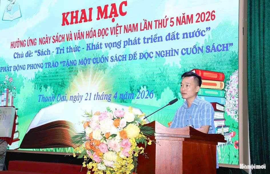 Ngày 21/4, xã Thanh Oai tổ chức khai mạc hưởng ứng Ngày sách và Văn hóa đọc Việt Nam lần thứ 5 năm 2026 với chủ đề: “Sách - Tri thức - Khát vọng phát triển đất nước” và phát động phong trào “Tặng một cuốn sách để đọc nghìn cuốn sách”.