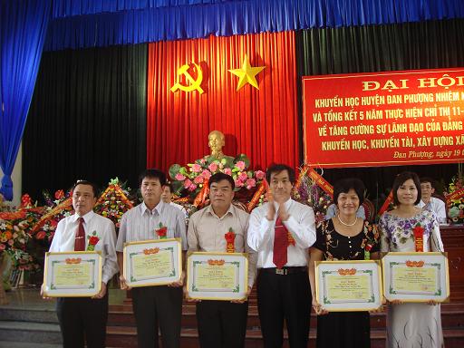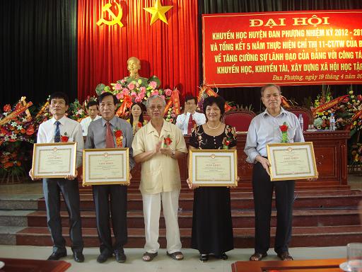 NGND Nguyễn Kim Hoãn-Chủ tịch HKH Hà Nội trao Kỷ niệm chương của TƯ Hội Khuyến học Việt Nam cho các đồng chí lãnh đạo huyện Đan Phượng