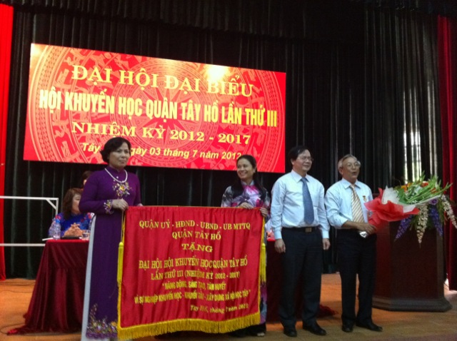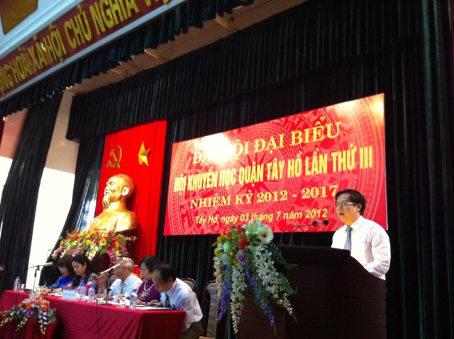 Sáng nay 03/07/2012, Quận Tây Hồ - Hà Nội tiến hành Đại hội Khuyến học lần thứ III nhiệm kỳ 2012-2017. Đến dự Đại hội, đại biểu Trung ương Hội Khuyến học Việt Nam có Ông Phạm Đăng Hùng, Thường vụ Trung ương Hội , đại biểu Thành phố có Ông Vũ Mạnh Kha - nguyên Phó Chủ tịch UBND TP Hà Nội, nguyên Chủ tịch Hội Khuyến học Hà Nội ; NGND Nguyễn Kim Hoãn - Chủ tịch Hội Khuyến học Hà Nội và các thành viên trong đoàn, đại biểu quận Tây Hồ có Ông Nguyễn Văn Thắng - Bí thư quận Ủy , kiêm Chủ tịch HĐND và các Đồng chí lãnh đạo Quận ủy, UBND quận, HDND quận , MTTQ quận, lãnh đạo Đảng ủy xã, UBND xã, HĐND xã và MTTQ xã , các đồng chí đại biểu các phòng ban quận, xã và các chi hội ,...