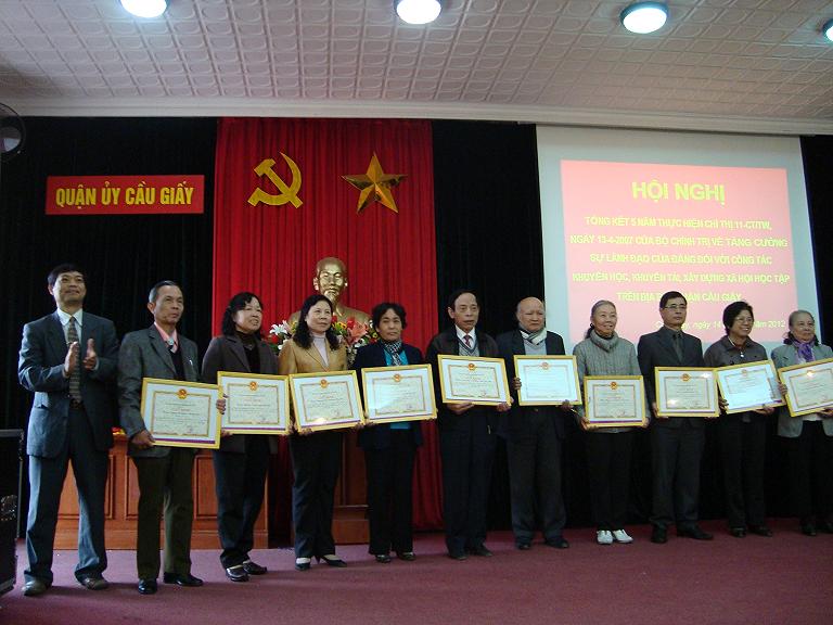 Sáng 14/3/2012, Quận ủy Cầu Giấy tổ chức hội nghị tổng kết 5 năm thực hiện Chỉ thị số 11-CT/TW ngày 13/4/2007 về :" Tăng cường sự lãnh đạo của Đảng đối với công tác khuyến học, khuyến tài, xây dựng xã hội học tập". Dự hội nghị có đại diện của Ban Tuyên giáo Thành uỷ, Sở GD&ĐT; Phó Bí thư thường trực, Phó Chủ tịch UBND quận; lãnh đạo các ban ngành, Hội khuyến học quận và các tập thể, cá nhân có thành tích xuất sắc,..