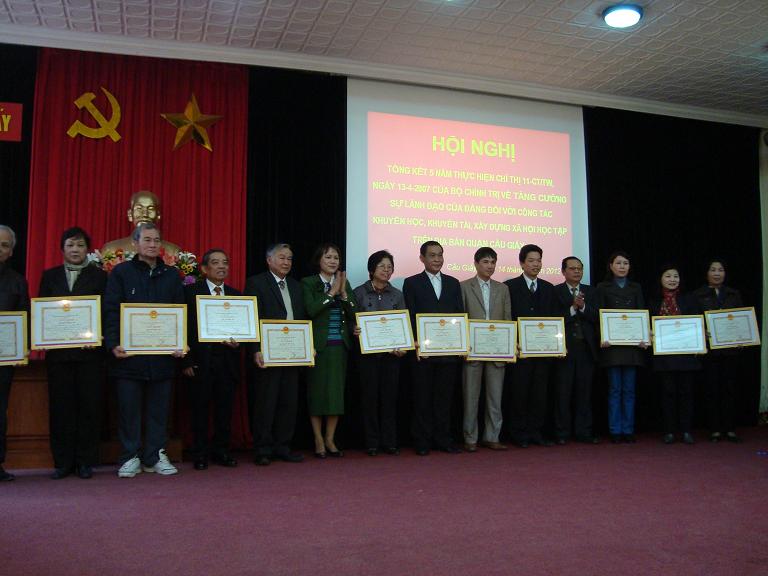 Hội nghị đã nghe Đồng chí Trưởng ban Tuyên giáo quận đọc báo cáo tổng kết 5 năm thực hiện Chỉ thi 11-CT/TW , nghe báo cáo điển hình của phường Yên Hòa, Hội khuyến học phường Quan Hoa, chi hội trưởng hkh20 phường Nghĩa Tân và tặng giấy khen cho 12 tập thể và 15 cá nhân có thành tích xuất sắc trong 5 năm thực hiện Chỉ thị 11-CT/TW. Sau đây là một số hình ảnh của Hội nghị: