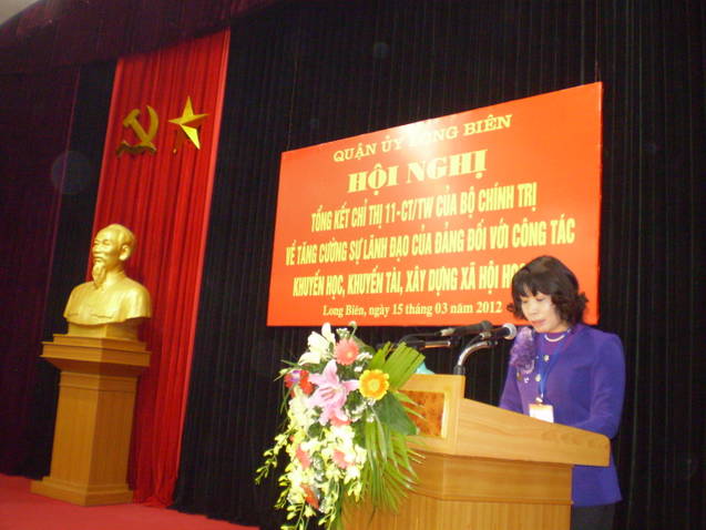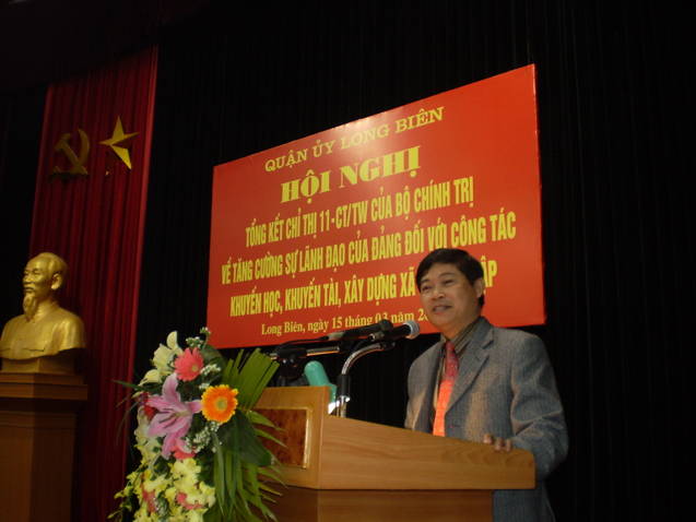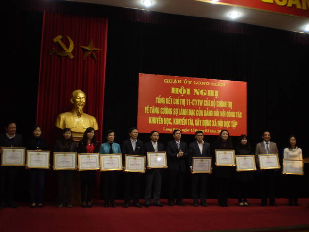Ngày 15/3/2012, Quận uỷ quận Long Biên đã tổ chức hội nghị tổng kết 5 năm thực hiện Chỉ thị 11 của Bộ Chính trị về tăng cường sự lãnh đạo của Đảng đối với công tác khuyến học, khuyến tài, xây dựng xã hội học tập. Đồng chí Phạm Thanh Học - Phó trưởng Ban Tuyên giáo Thành uỷ, NGND Nguyễn Kim Hoãn – Chủ tịch Hội Khuyến học Hà Nội, Đỗ Mạnh Hải – Phó Bí thư, Chủ tịch UBND quận đã về dự.
