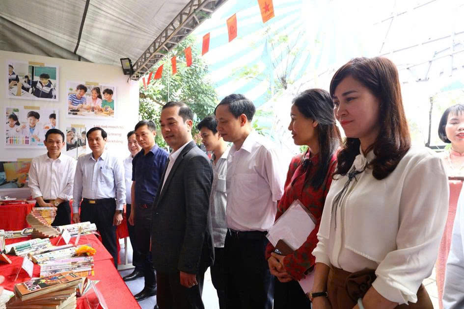 Học sinh Trường THCS Song Phương trưng bày giới thiệu gian sách Vì vậy, Phó Chủ tịch UBND xã Sơn Đồng Nguyễn Duy Cương đề nghị các cấp ủy Đảng, chính quyền, các nhà trường và tổ chức đoàn thể tiếp tục quan tâm, xây dựng môi trường đọc lành mạnh; đổi mới phương pháp tổ chức hoạt động đọc sách, khuyến khích người dân và học sinh chủ động tiếp cận tri thức, hình thành thói quen đọc sách thường xuyên.