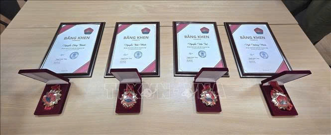 Đoàn chụp ảnh lưu niệm sau khi nhận Bằng khen và Kỷ niệm chương