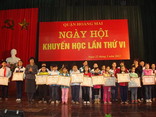 Em Lê Đức Hoàng đọc báo cáo điển hình tại ngày Hội khuyến học lần thứ XI , quận Hoàng Mai