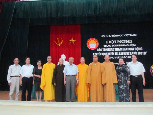 Sau lời khai mạc, GS.TS Trần Xuân Nhĩ - Phó Chủ tịch Hội Khuyến học Việt Nam đã đọc báo cáo đề dẫn cho hội nghị. Tiếp theo là tham luận của Chủ tịch Hội khuyến học, linh mục Dương Hữu tình của tỉnh Hải Dương và các Ni sư, Đại đức của các các tỉnh tham dự hội nghị.