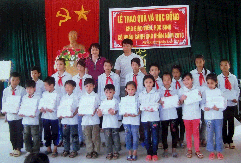 Đ/c Nguyễn Thị Vân Khanh trao học bổng cho học sinh trường Phú Mãn, huyện Quốc Oai.