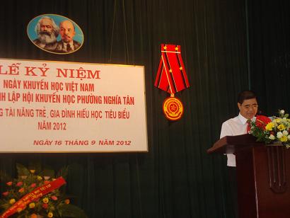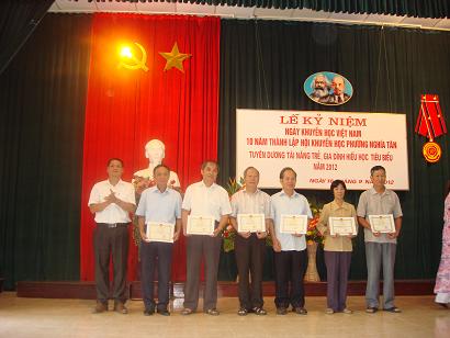 Tại buổi lễ , Hội Khuyến học phường Nghĩa Tân đã tổ chức trao giấy khen và tiền thưởng cho các tài năng trẻ, 44 hộ gia đình đạt danh hiệu gia đình hiếu học tiêu biểu, 12 chi hội xuất sắc, 49 cá nhân có nhiều đóng góp trong phong trào Khuyến học của phường,..