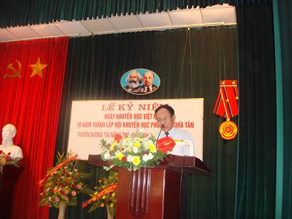 Ông Trần Văn Thụ - Chủ tịch Hội Khuyến học phường Nghĩa Tân đọc lời khai mạc hội nghị