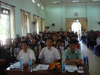 Ông Phạm Văn Tín - Chủ tịch UBND phường Nghĩa Tân và Bà Nguyễn Hằng Nga - Giám đốc Quỹ Khuyến học Hà Nội và các đại biểu dự hội nghị