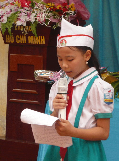Trong số các em đạt giải có nhiều em đạt cao và đạt nhiều giải. Em Lưu Thị Tâm Trang đạt 6 giải trong năm học này đã vinh dự lên phát biểu cảm tưởng.