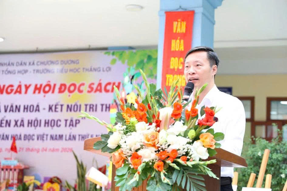 Phát biểu tại buổi lễ, đồng chí Nguyễn Trọng Đô - Phó Chủ tịch UBND xã Chương Dương nhấn mạnh vai trò của sách trong đời sống và học tập. “Sách là kho tàng tri thức vô giá của nhân loại, là người thầy thầm lặng, người bạn đồng hành tin cậy của mỗi con người. Trong bối cảnh chuyển đổi số, cần phát triển văn hóa đọc hài hòa giữa sách truyền thống và các hình thức hiện đại, đồng thời hình thành thói quen đọc và vận dụng tri thức vào thực tiễn”, đồng chí nêu rõ.