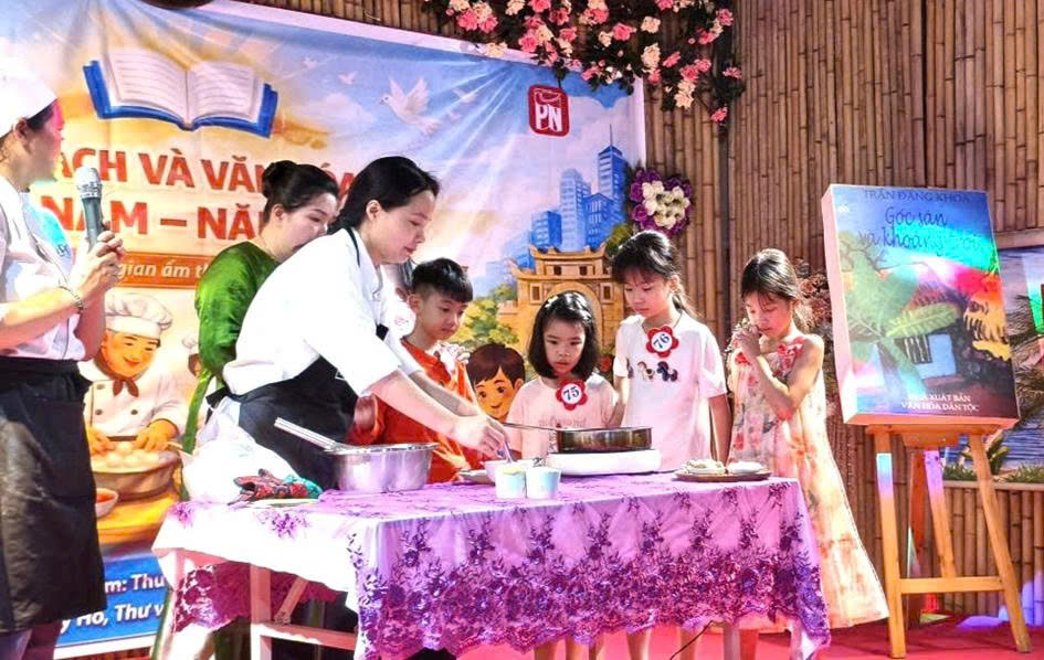 Khuôn viên Thư viện Hoa Trạng Nguyên đã được trang trí sinh động với những hình ảnh quen thuộc về sách, tri thức và tuổi thơ. Các em học sinh hào hứng tham gia nhiều hoạt động như giao lưu tìm hiểu về ý nghĩa của Ngày sách, trải nghiệm đọc sách trong không gian mở và đặc biệt là cuộc thi làm bánh “thần tốc” gắn với chủ đề ẩm thực - một cách tiếp cận mới mẻ nhằm đưa văn hóa đọc đến gần hơn với đời sống.