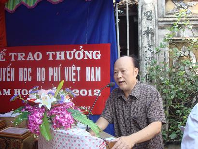 Ông Phí Văn Chiến Phó Chủ tịch Hội đồng Phí tộc phát biểu động viên, khích lệ các em học sinh con cháu dòng học Phí tộc
