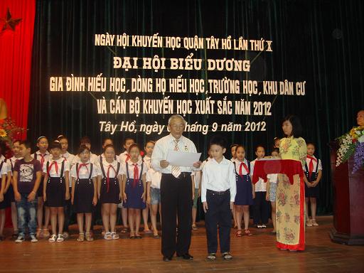 Đại hội đã tặng bằng khen và trao thưởng cho 25 em học sinh tài năng về văn hóa, văn nghệ, thể dục thể thao, cờ vua; 4 Hội Khuyến học, 31 chi hội và 48 cá nhân xuất sắc trong phong trào khuyến học, khuyến tài, xây dựng xã hội học tập quận Tây Hồ. Đại hội thống nhất đề cử 8 đại biểu đi dự Đại hội Thành phố tổ chức vào tháng 12/2012..