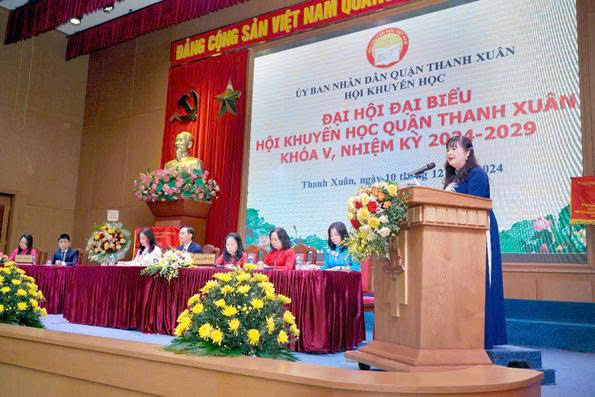 Chủ tịch Hội Khuyến học Hà Nội phát biểu chỉ đạo Đại hội Hội Khuyến học