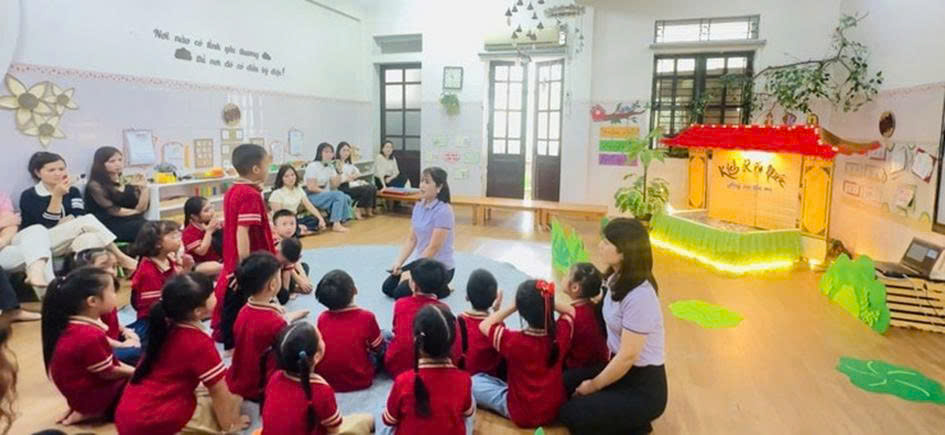 Không còn cách dạy truyền thụ một chiều, các cô giáo đã biến lớp học thành không gian trải nghiệm sinh động. Trẻ được tham gia tương tác, trao đổi và nhập vai vào các tình huống của câu chuyện. Thông qua đó, các em không chỉ phát triển ngôn ngữ mà còn được giáo dục kỹ năng sống, biết nhận diện và điều chỉnh cảm xúc, nuôi dưỡng lòng nhân ái.